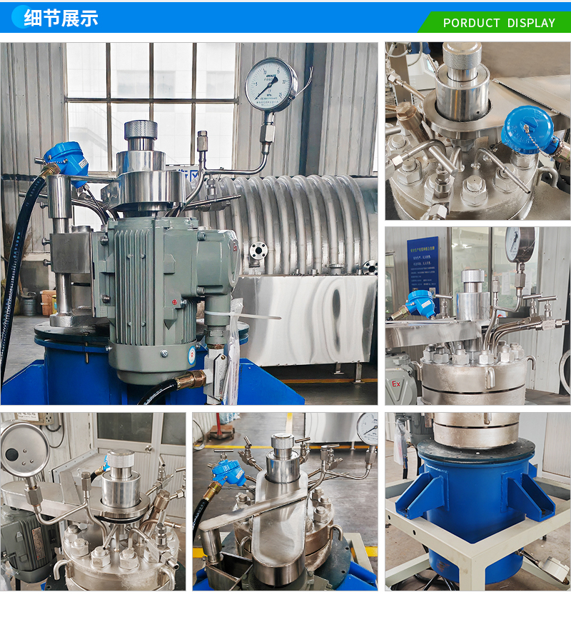 常規釜蓋開口 氣相口配針形閥,液相口配針形閥及釜內插底管,固體加料口配絲堵,測控溫口配鉑電阻,壓力表安全爆破口配壓力表及安全防爆裝置,釜內冷卻盤管進、出口配水咀